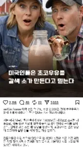 쵸코우유가 갈색 소 젖에서 나온다 믿는 미국인들…