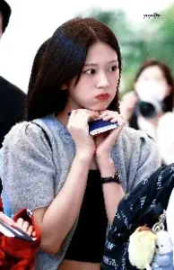 (SOUND) 회색 란제리 끈나시 입고 출국하는 키스오브라이프 나띠 가슴골