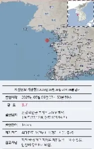 [지진] 충남 태안군 북서쪽 52km 해역 // 규모 3.7 지진 발생