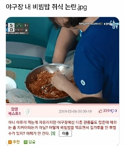 야구장내 비빔밥 취식 논란