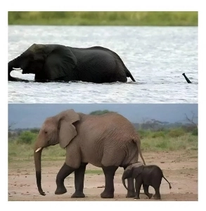 엄마와 함께 강을 건너는 아기 코끼리