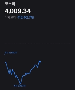 실시간 코스피 4000깨짐ㄷㄷ