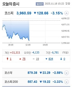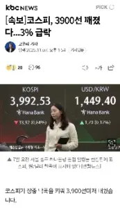 [속보] 코스피 4000선 붕괴…3.35% 내린 3983.64”ㄷㄷㄷㄷㄷㄷㄷㄷㄷㄷㄷㄷ