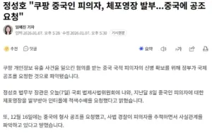 정성호 “”””쿠팡 중국인 피의자, 체포영장 발부.중국에 공조 요청””””