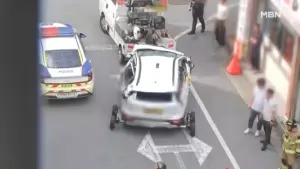 광주 한 주차타워 4층에서 벽 뚫고 택시 추락