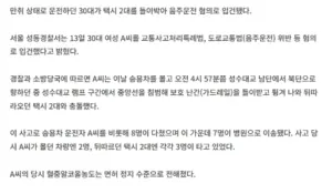[속보] 만취운전 30대女, 성수대교서 택시 2대와 충돌… 7명 병원 이송