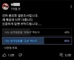 13만명 투표 삼각김밥 데워 먹는데 그냥 먹는다