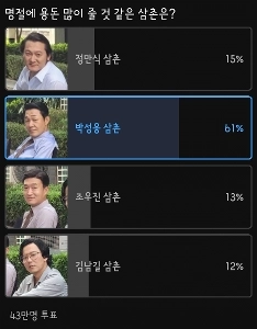 43만명이 투표한 명절에 용돈 많이 줄 것 같은 삼촌
