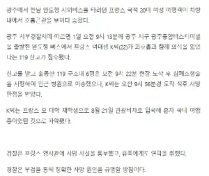 [속보] 광주종합버스터미널 시외버스서 20대 프랑스 여대생