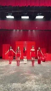 옆구리가 파인 빨간 볼레로 섹시 원피스 프로미스나인 이채영