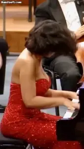 (SOUND)피아노 치고 노래부르는 QWER 리더 쵸단 시스루 망사 블랙 브라 가슴골