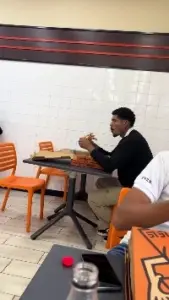 (SOUND)피자가게에서 피자 쓰리썸 음미하는 남자