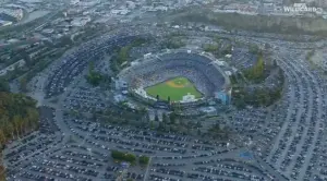 포스트시즌 1차전 하늘에서 본 다저 스타디움