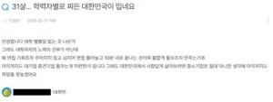 대한민국의 학력차별이 밉다는 31살 무직백수