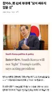 (속보) 한덕수, 미 관세부과에 맞서싸우면 안돼