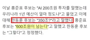 질문 우리나라 1년 예산? 한동훈 답변 350조!