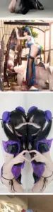 고앙이귀 + 한복 자주색 브라 삐져나온 가슴골 고라니율