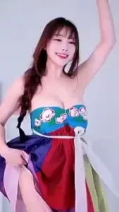 (SOUND)어우동이 된 겨우디 F컵 가슴골 조이는 빨간 한복
