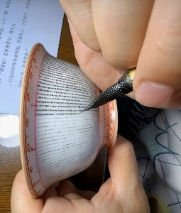 중국 찻잔에 한자 쓰기
