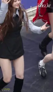 땋은 머리 + 검은 리본 엔믹스 설윤 핫팬츠 롱부츠 꿀벅지 – 음중