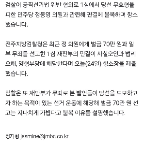 [속보] “”””벌금 70만 원, 지나치게 가벼워””””검찰, 민주당 정동영 의원에 항소