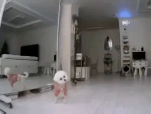 혼자 있는 멍멍이에게 홈캠으로 말을 걸었을때 반응.gif