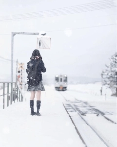 일본 홋카이도 -15도에서 기차 기다리는 여고생.JPG