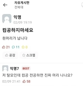 컴공과 가지 마라흰머리 난다