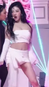 앞머리 깐 르세라핌 김채원.흰 튜브탑 야꼽 가죽핫팬츠 허벅지