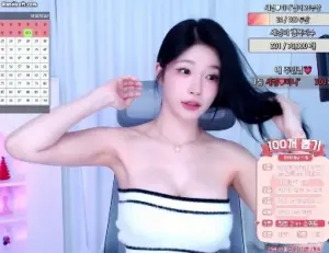 흰 튜브탑 가슴골에 하트스티커 붙인 문월 방셀 영상