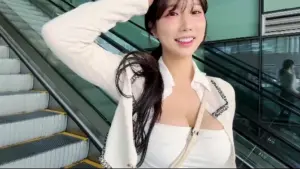 에스파 닝닝 흰 튜브탑 윗가슴골