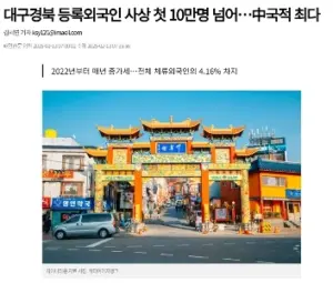 대구경북 등록외국인 사상 첫 10만명 넘어…中국적 최다
