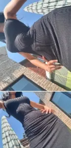 뒷거울로 엉덩이도 보여주는 쿠라맛챠 홀터넥 의상 가슴골