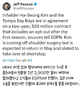 SSG 김재환과 2년 22억 계약