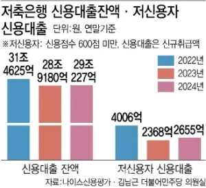 [단독]저축銀, 저신용자 대출 2년새 34% ”뚝”