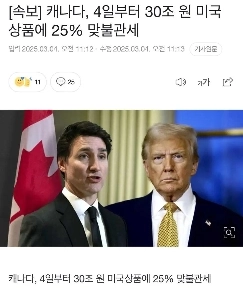 [속보] 캐나다, 4일부터 30조 원 미국상품에 25% 맞불관세