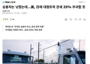 달라는대로 줬는데도. 美, 日에 대형트럭 관세 25% 부과할 듯