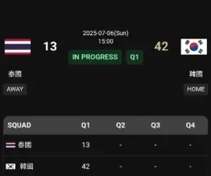 존스컵 태국전 1쿼터 13 대 42