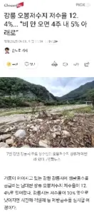 강릉 오봉저수지 저수율 12.4%. “비 안 오면 4주 내 5% 아래로”