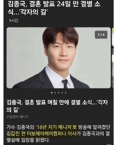 김종국 결혼발표 24일만에 결별소식.”각자의 길”