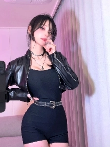 꽉 끼는 숏레깅스 + 하네스끈 브라 비치는 QWER 쵸단