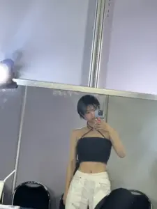 고양이가 된 QWER 마젠타 천장캠 가슴골 화이트 시스루 캐미솔