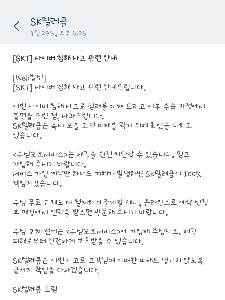 속보) SKT 이제야 공식 문자 줌